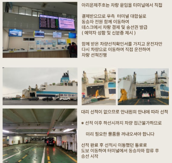 - 안내에 따라 차량 선적 후 터미널 이동.